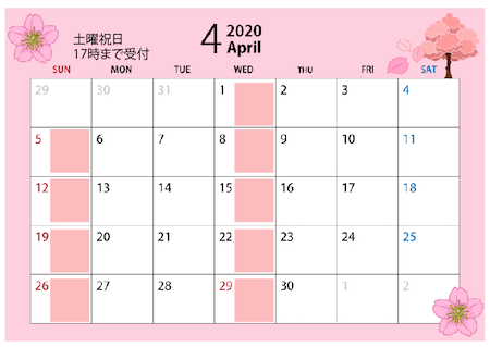 4月の施術&休院日