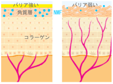 そして、皮膚の炎症が生じるとさらにバリア機能に働く成分が失われてしまい、皮膚は乾燥や炎症を繰り返し悪循環になってしまいます。