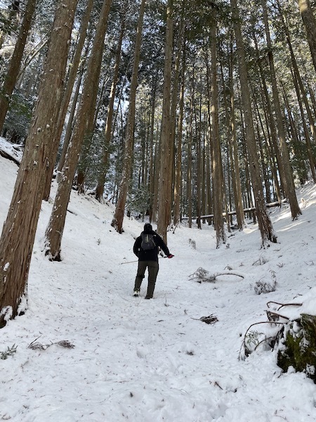 なかなか、低山で丁度良い積雪が積もるタイミングというに出会わないので今回の京北トレイルでは安全に楽しく雪山体験もでき充実した1日でした。