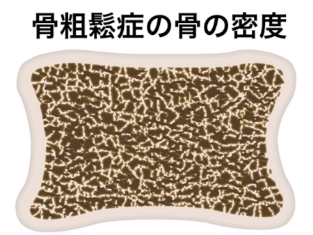 骨粗鬆症は、女性に多く女性ホルモンのエストロゲンの欠乏、加齢、運動不足、カルシウムを中心とする栄養不足などで