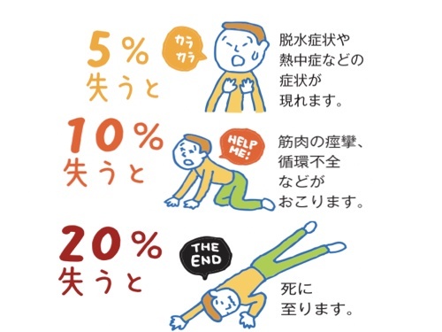喉が渇いたと感じる状態は体の水分が不足して脱水状態になっています