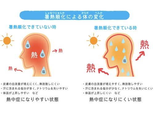 体を暑さに慣らすことを「暑熱順化」といい色々な効果があります
