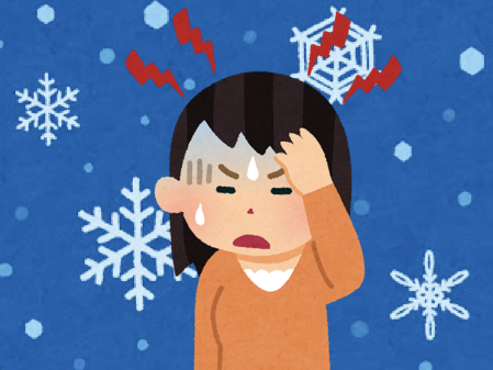 寒い場所から暖かい場所への急な温度変化で頭痛が起きやすくなります