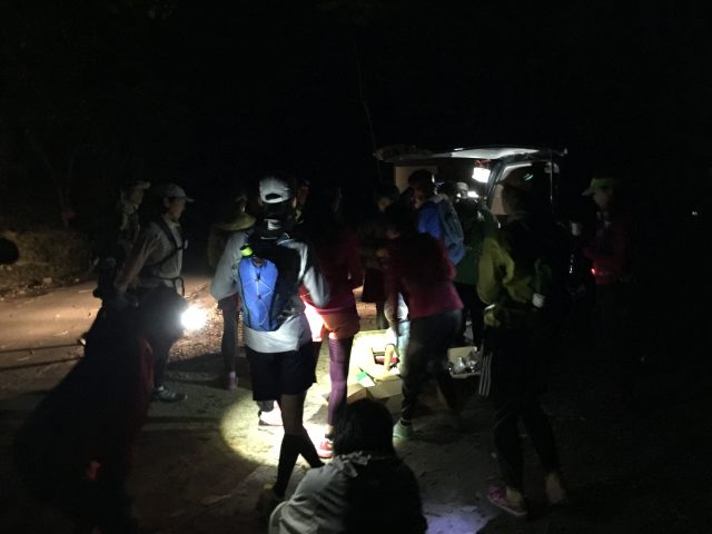 エイドステーションではきむかつコーチの奥さんをはじめサポートの方々が笑顔のお出迎えで元気をもらい、食事に水分補給、気温が下がってからの温かいの飲み物に参加者への気遣いとサポート体制万全で次へ次へと先回りでサポートしてくれてとても安心感がありエイドステーション目的に頑張れました。