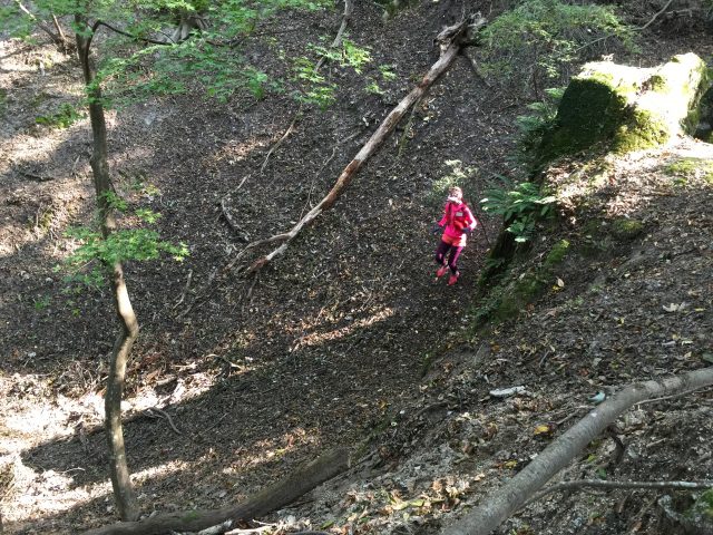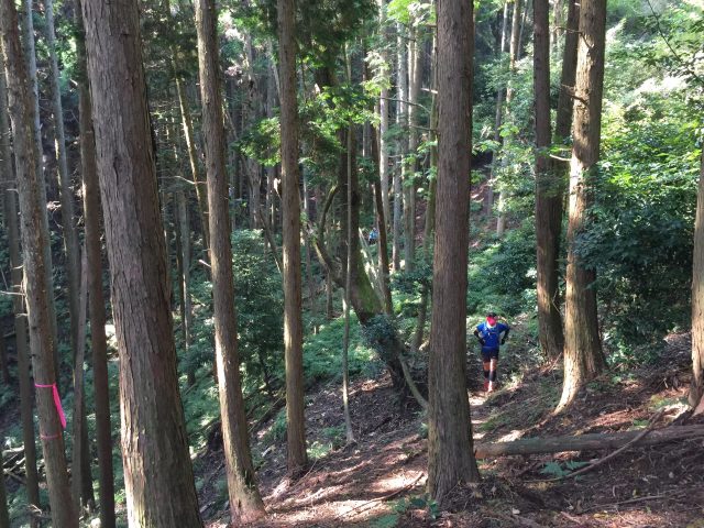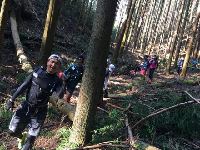 朝8:00に出町柳集合で受付を済ませ準備運動や注意事項などを聞いて第1ステージスタート、大文字山の麓まで軽くランでそこから裏大文字といわれる大文字の旧道を登り、幻の滝(今は水は無い滝)をかけぬけ大文字山の山頂に、そして景色を見て如意ヶ岳から小関峠を超えて第一エイドで休憩。9:00〜13:30
