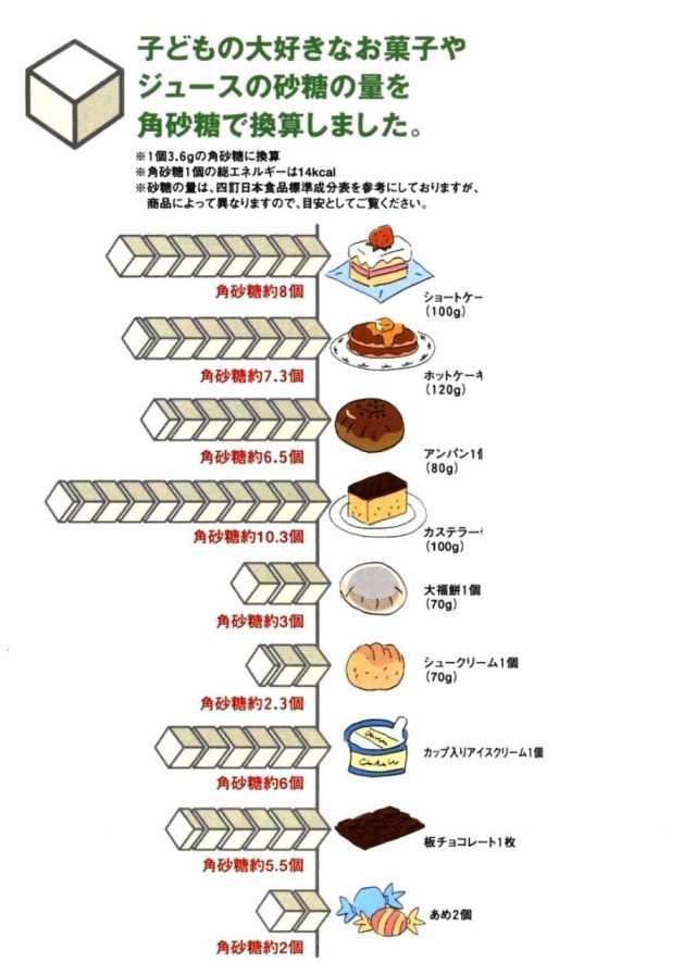 原因は糖質の取り過ぎです。何気なく口にするものでも、角砂糖の量に置き換えるとものすごい量です!