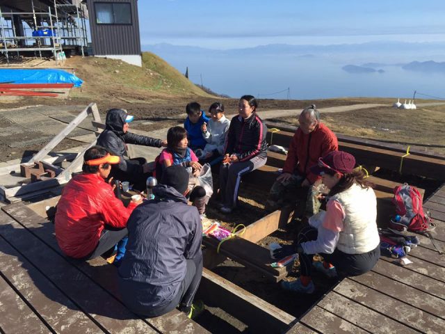 行きは2時間半で琵琶湖テラスで1時間半のんびり過ごし、帰りは1時間半で来た道をあっという間に下まで降りて来ました。天気も良く海雲と雲のない景色の両方を楽しめ、休憩でとるおやつと温かい飲み物は最高でした。