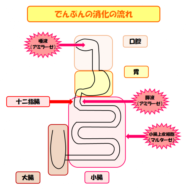 特にお餅は、ブドウ糖の結合方法が枝分かれになってつながっている「アミロペクチン」から作られているため、アミラーゼの作用点が多く、でんぷんを分解してブドウ糖になるスピードがも早いため「消化が良い」といわれます。