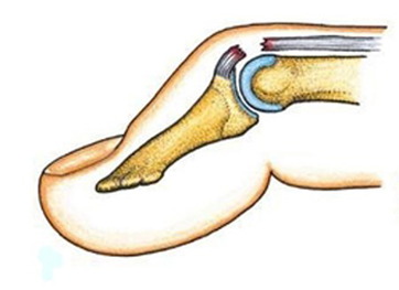指の第一関節、指の第二関節の背側での皮下断裂は、放置すると伸筋腱のバランスがくずれ手指の変形に発展するため、手術が必要です。断裂した腱の断端同士を縫合することができない場合が多いので、腱移行術や腱移植術などを行います。