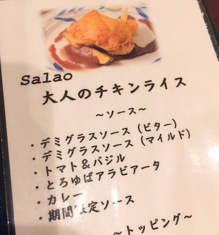 この大人のチキンライスは外はパリパリでチキンの中にピラフが入っています。一緒にサラオさんに食べに行く方全員が注文して運ばれたときに「お〜」っと喜んでくれる一品です。
