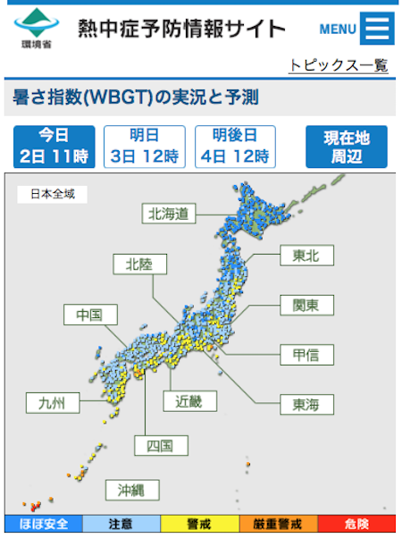 また、外出の時はWBGTといわれる暑さ指数をネットで事前にチェックしておくこともおすすめです。